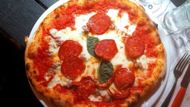 Pomodoro san marzano DOP, fior di latte di agerola, funghi e prosciutto crudo