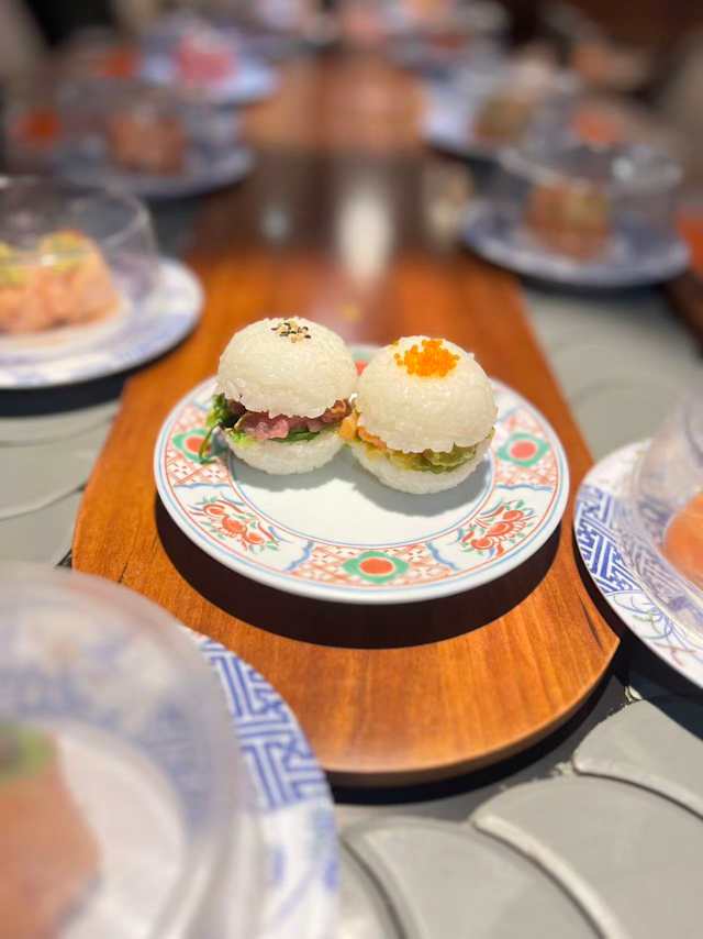 - Rice ball with spring onion, avocado, cream cheese, sesame