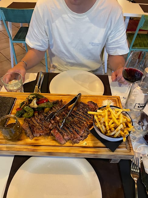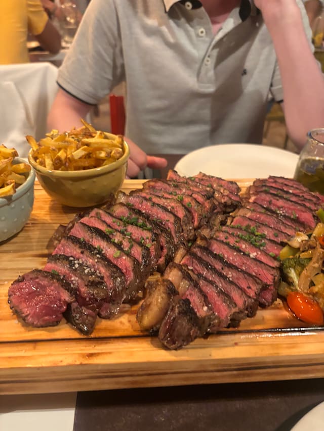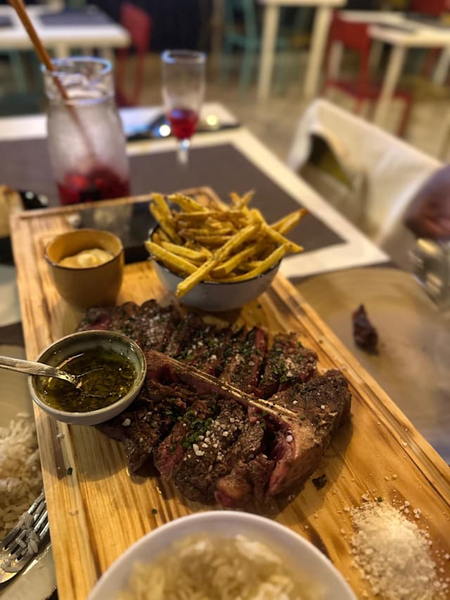 9.5/10We had 2 of the T bone steaks and they were very very tasty and perfectly cooked! Waiter was very friendly, just wish the location for this place was better! Definitely recommended.