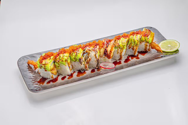 - 8 saumon rolls, 6 maki tobiko (california aux oeufs crevette)