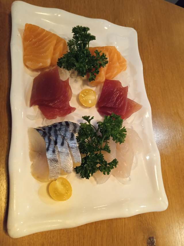 - 2 soupe, 2 salade, 2 riz Assortiment de 25 tranches de sashimi 10 sushi, 6 maki saumon, 6 maki Las Vegas