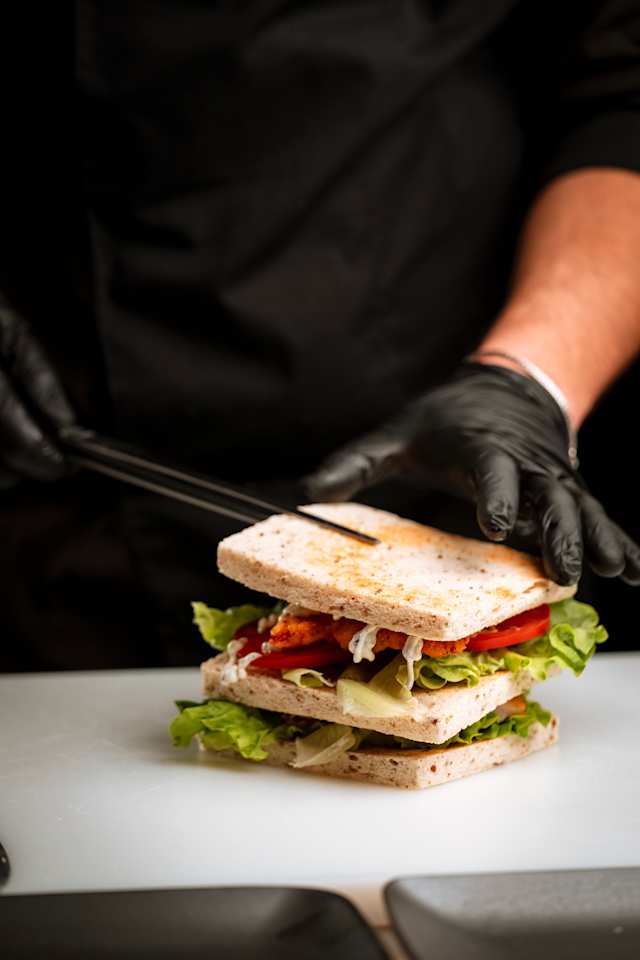 - Pane ai cereali in cassetta, pollo grigliato, uovo, cheddar fuso, lattuga iceberg, pomodoro