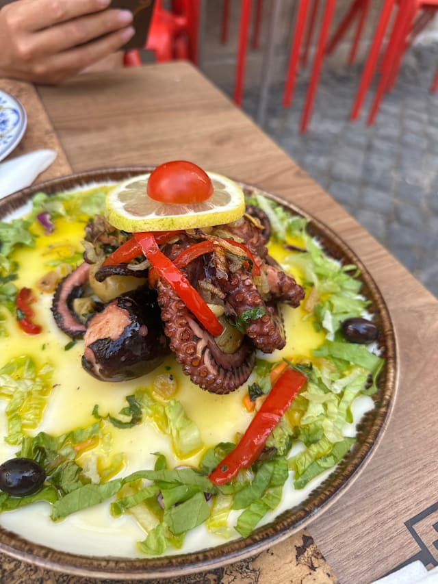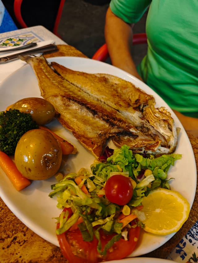 9.5/10Great location in old town Lisboa. Our waiter was fabulously friendly and helpful. The seafood catalana was truly delicious. Packed with clams, mussels, shrimp and octopus. We were treated to Fado singing from the restaurant next door and a street performer with a guitar in the tiny square above. All in all a wonderful dining experience.