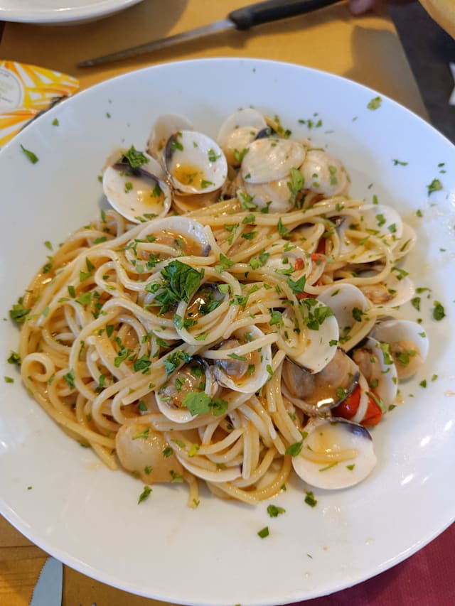 10/10The restaurant was placed In a square with lots of other restaurants, but there was a nice air to it and the service was fast and good! We had a spaghetti carbonara and some pizzas and all was very nice - a good recommendation from our family.