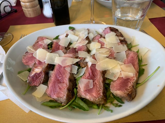 10/10I would recommend this lovely restaurant. We booked it in advance of arriving in Lucca and it lived up to our expectations. We were met by a very friendly host who showed us to our table outside the restaurant with lovely views of the piazza. We were given a glass of Prosecco on the house as a welcome drink. The food was local and very tasty. I had the Tomahawk pork steak and my partner had the beef fillet. Both highly recommended dishes. The house wine was of a high standard. We will definitely visit Old Charlie when we return to Lucca.