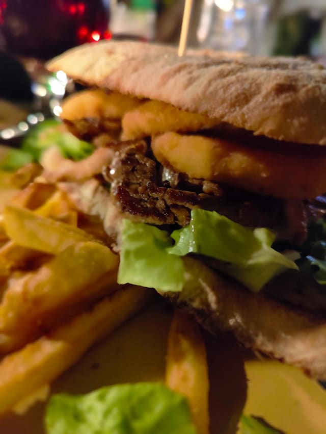 Il Ducato (hamburger di manzo, provola affumicata alla piastra, patatine, prosciutto crudo, insalata e maionese)