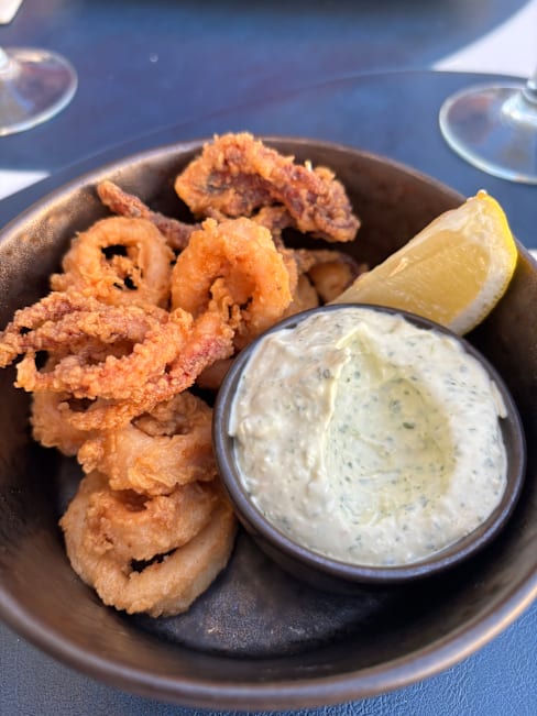 9/10We sat on the opposite end of the restaurant, seating out right by the boats on the dock. Service was excellent, we had wine apps and dinner. The rigatoni with burrata could have used a bit more spice-but the fish and chips was excellent. Appreciate that the restaurant gave ice bucket for the rose.