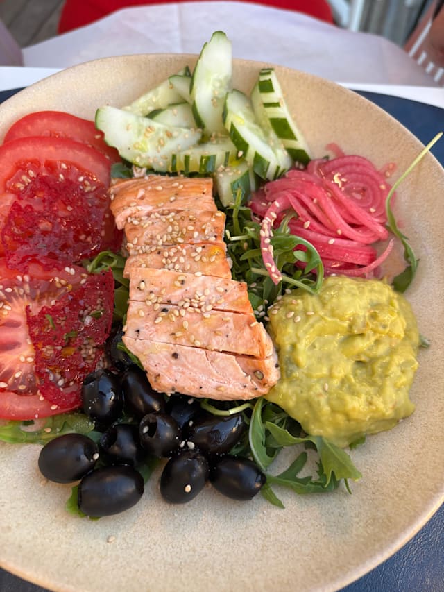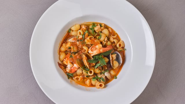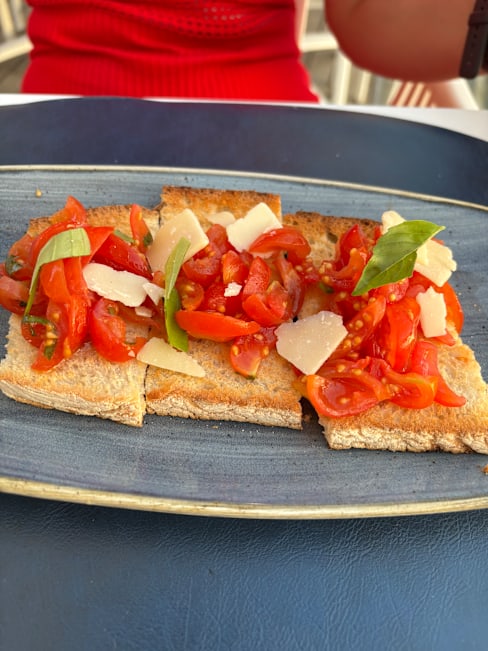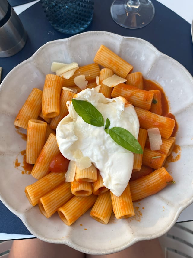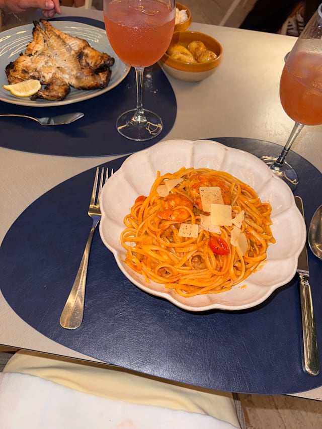 6.5/10We were very disappointed after checking the menu on line to find a very limited choice of not so interesting dishes when Quite expensive. The kids had a tasty but small (although we chose the adult version) spaghetti for 20,50€ each. My wife enjoyed a great risotto. The burrata was not worth choosing at all. More of a basic mozzarella. A bit chilly inside in the evening as well. Friendly and efficient service. To be checked out as a place in the summer, I guess.