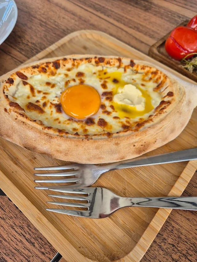 Barquito de masa de pan relleno de queso derretido, huevo y mantequilla