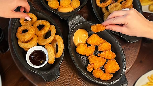 (minimo 2 persone) manzo, petto di pollo*, salsiccia, wurstel e verdure al forno, accompagnati da patate* premium fries e salsa OWW