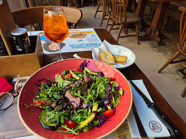7/10The place is very nice but to be honest I was disappointed about my food,I had a beef salad which suppose to consist in mixed salad with cherry tomatoes grilled zucchini and beef marinated and aside toasted crostini bread .I had a full plate of salad ,zucchini was for sure not grilled and 2 peaces of beef ,the crostini the waitress didnt get them i had to tell her she went to check the menu then she got me 2 peaces of cold toasted crostini surely not toasted at that time.when I payed and left tips and payed with my fork pay she told me that the tips are not for them but the fork unbelievable.