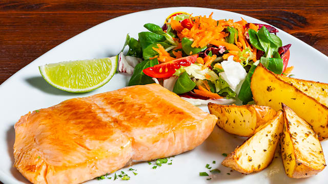Manzo e petto di pollo* italiano alla griglia serviti su letto di rucola, scaglie di parmigiano reggiano dop e dadolata di pomodoro, accompagnato da patate al forno e pan bruschetta* (bibita 0,3 l o acqua 0,5 l inclusa)