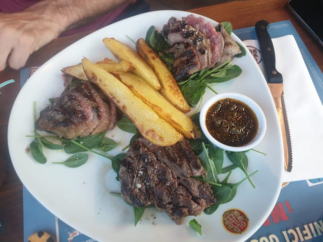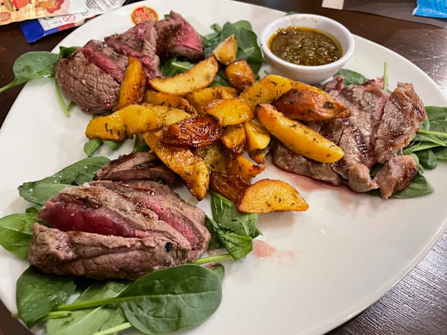 7/10Galleto dish was abundant, chicken ceazers salad was ok, not the best though. Personel was nice. Overall experience was ok.