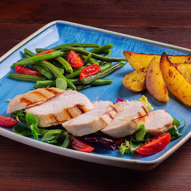 - Manzo e petto di pollo italiano alla griglia serviti su letto di rucola, scaglie di parmigiano reggiano DOP e dadolata di pomodoro, accompagnati da patate al forno e pan bruschetta. Compresa nel prezzo una bibita tra: - coca-cola alla spina da 0,3 l/ coca-cola zero zuccheri alla spina da 0,3 l/ fanta orange alla spina da 0,3 l/ acqua minerale da 0,5 l