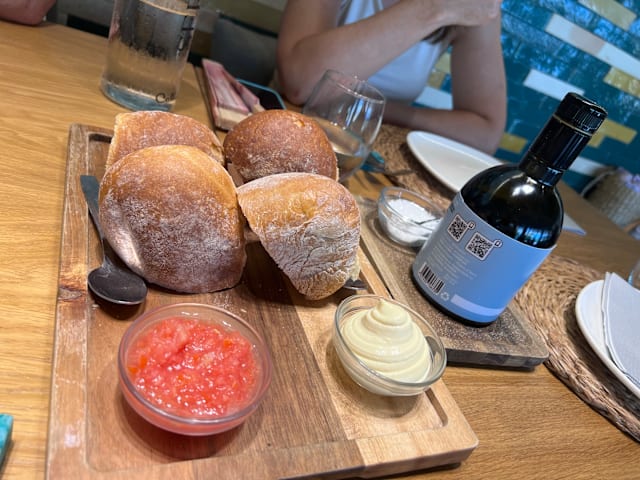 8/10We had a good meal. The cheese platter was very good although it would benefit from some labels so that you knew what kinds of cheese you were eating. The Lubina frita was delicious, I recommend it. The grilled vegetables were less tasty though. Some of that black salt we had in the salad would have been ideal, as well as some sprinkled herbs on top. Overall, it was good.