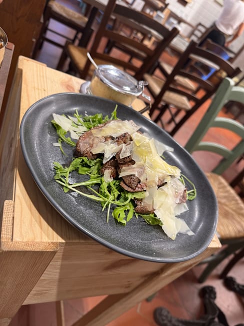 10/10We came back to Oliandolo for 2nd time before leaving Florence. The food was phenomenal and the service today was better than yesterday. Both salads we tried — Greek and the one with peaches — were extraordinary. The proscuito pizza was excellent, then the gorgonzola and salsice pizza was decent. The steak and the ravioli with 3 types of tomatoes were very good too. We didn't order desserts because we were full, but I believe they would be of the same quality. Definitely book a table!