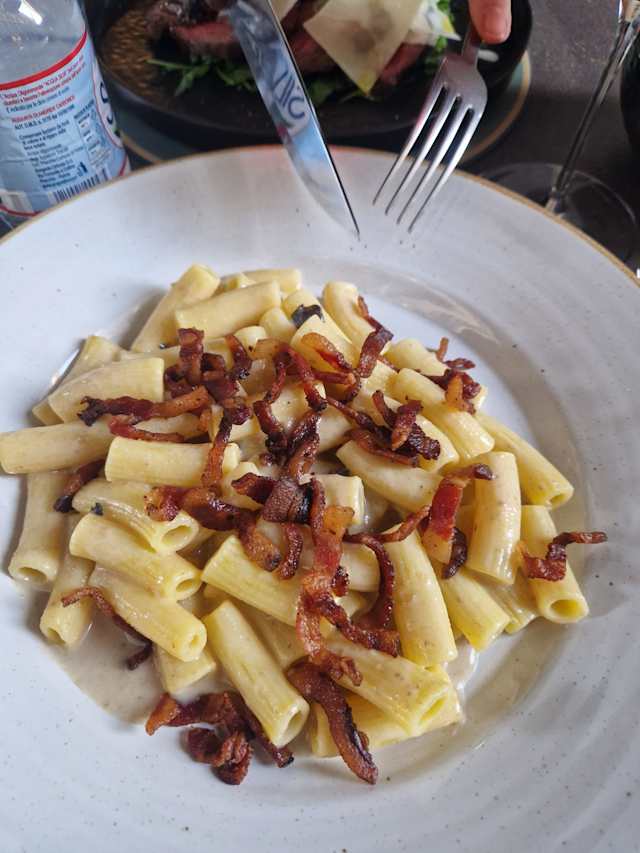 9/10staff was friendly. ambience was very nice. there was no delay with the service. the salad and the carbonara ware great. the risoto not so good.