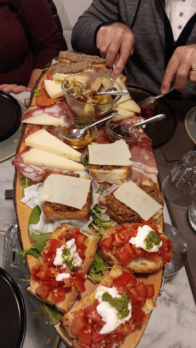 9/10The two women working the front of the restaurant were incredibly friendly, navigating a stream of locals and tourists and switching seamlessly between speaking Italian, English, and Spanish. Food was great. Appetizer platter (sliced meats, cheese, crostini, etc) was delicious and substantially larger than expected. The rest of our meal tast s great and had generous portions. Simply, we got more food than we could eat.