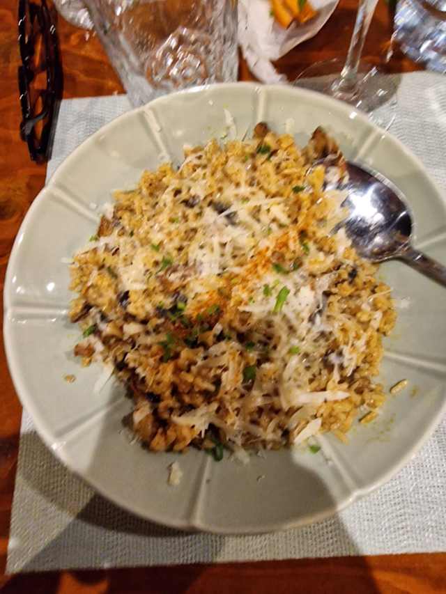 - Mistura de cogumelos, arroz, manteiga, queijo e vinho branco