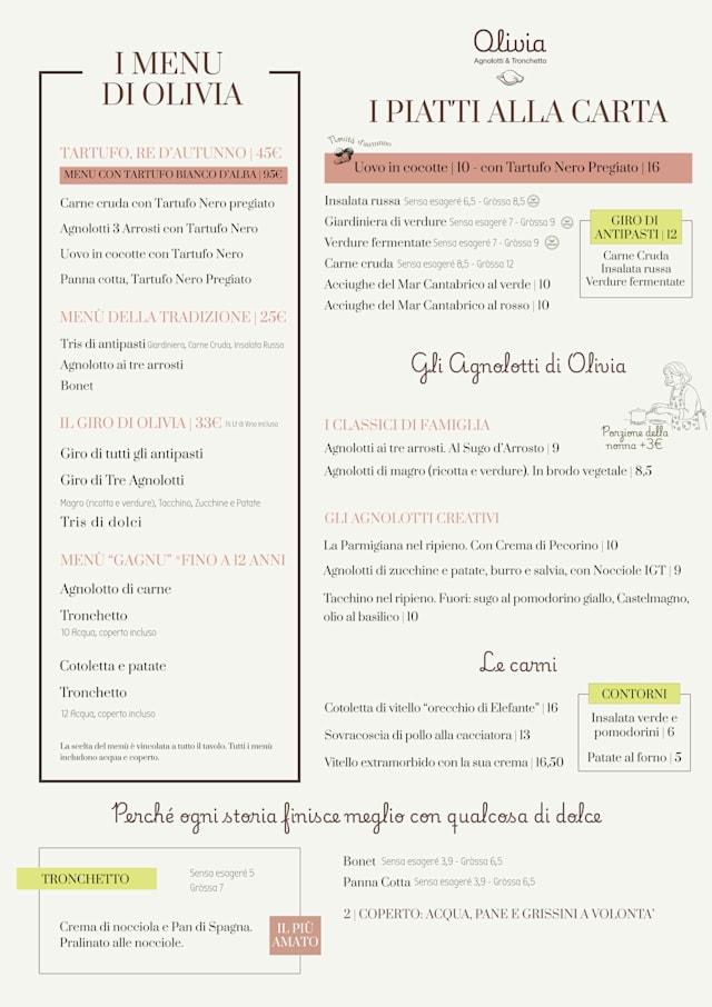 10/10Lovely little restaurant in Alba! We booked last minute on The Fork and were amazed — cozy, beautifully decorated, and run by two super nice guys. The Funghi Fritti were so good we ordered them twice, and both desserts (Bunet and Tronchetto) were excellent. Prices are fair, and the Fork discount was a plus. It can get a bit noisy when full, but overall a fantastic experience!