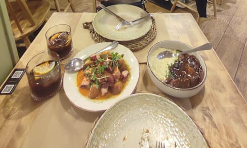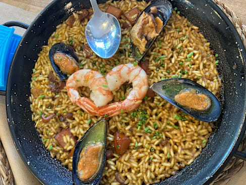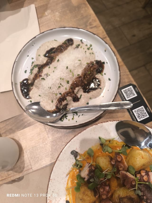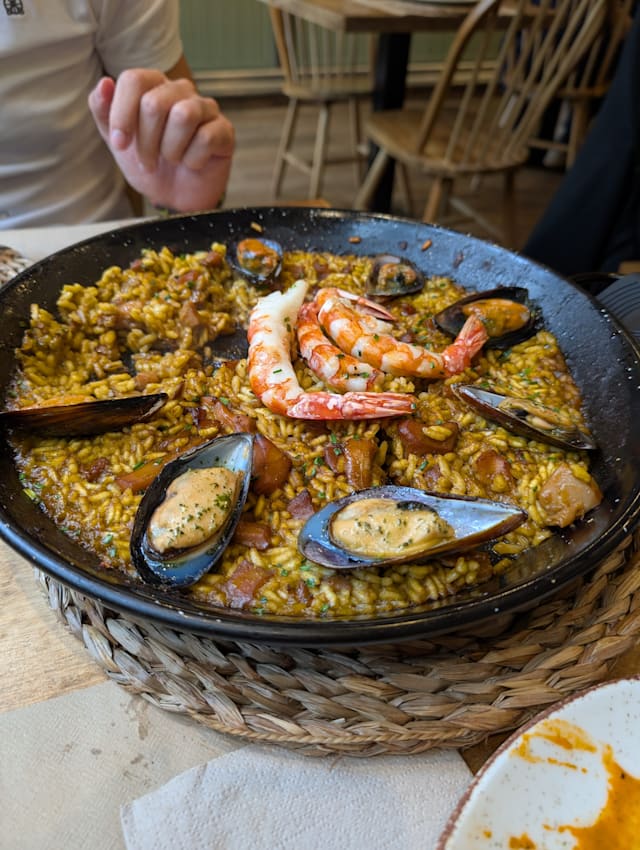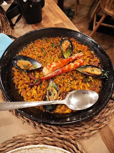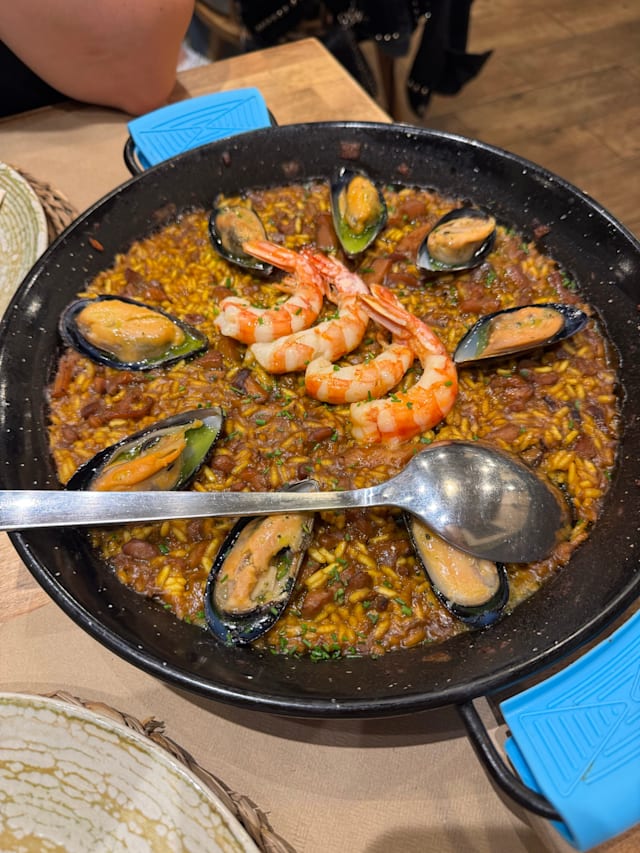 8.5/10The flavours were all impeccable from the eggplant tostada to the 🐙. Veal cheeks tender and savoury. Paella good but not exceptional. Dulce de leche postre saborisimo!!!! Without the 40% fork discount it would have been overpriced for lunch. With was normal pricing. Overall a great experience.
