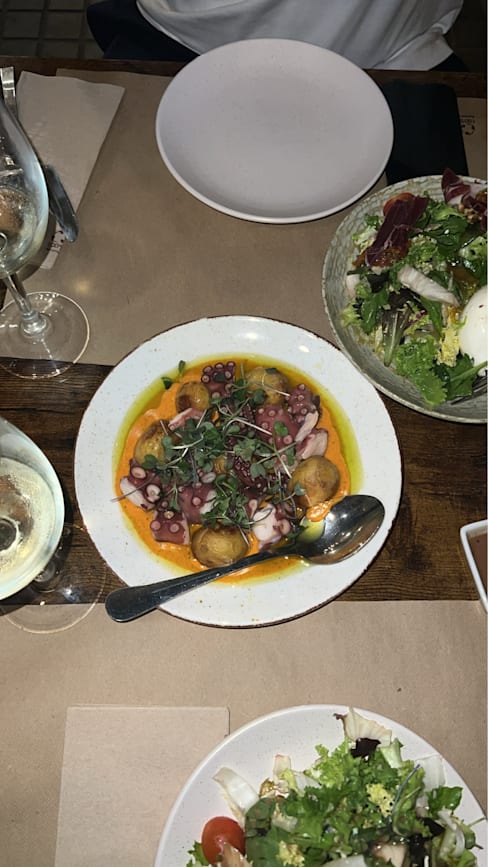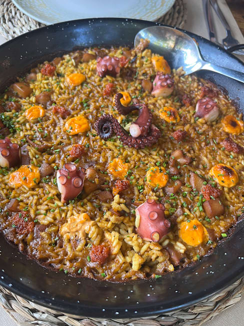 8.5/10The flavours were all impeccable from the eggplant tostada to the 🐙. Veal cheeks tender and savoury. Paella good but not exceptional. Dulce de leche postre saborisimo!!!! Without the 40% fork discount it would have been overpriced for lunch. With was normal pricing. Overall a great experience.