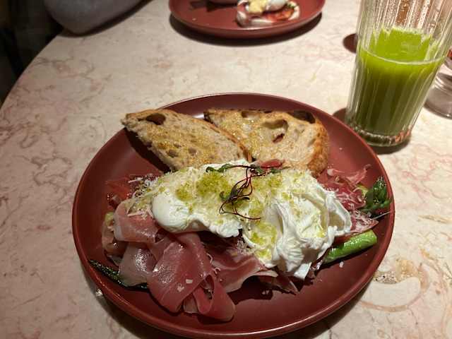 6/10The Bagel & Eggs was quite good, but the chai latte was way too sweet without adding any sugar. The vegan pancakes are okay, but too dense and sweet (I could not finished them by myself). The poached eggs that come with the avo toasts were almost hard boiled, so my friend asked for another egg, this time properly cooked. After what seemed like forever, they brought the actual poached egg and said that they would do a 30% discount on the eggs. However, they just ended up charging for an extra egg without any discount. The ambience is very nice and cozy, but Lisbon is full of other places just like that, and with the same type of food. This one does not stand out.