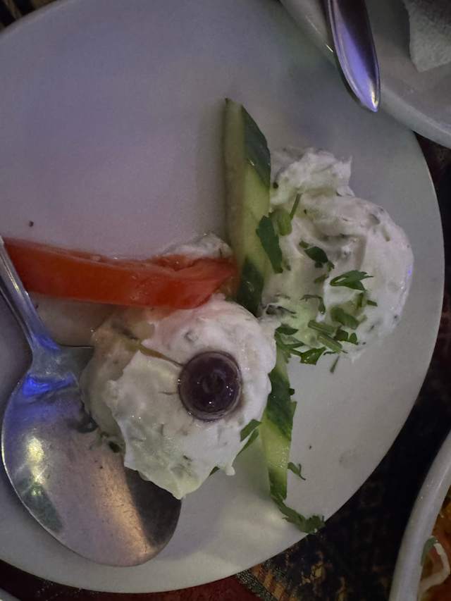 - yoghurt met fijngesneden komkommer, knoflook en griekse kruiden