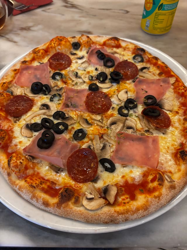 6.5/10We ordered garlic bread and pizza, both of which were good. The place has the potential to feel cozy, but it needs more care: there’s no proper space for changing a baby’s diaper (we were told to use a table upstairs), the bathroom had broken taps and a door that wouldn’t close. Service was chaotic: one staff member was visibly altered and disturbing guests, while the other was left overwhelmed trying to manage all tables. When the owner arrived, she was immediately met with complaints. This was my second visit to Olivo, and once again I experienced the same chaotic atmosphere. That said, the food is tasty and, with The Fork discount, reasonably priced.