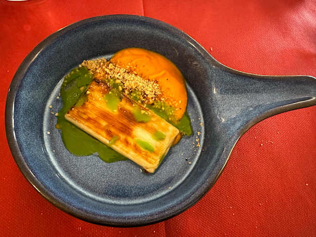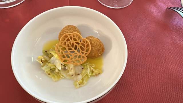 - Cappasanta al burro acido, verza alla senape e dressing di arancia amara