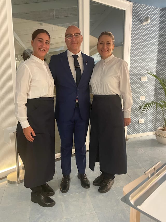 10/10+5The last evening of our visit to Maiori was made so incredibly special by the maître d', Vincenzo and front of house staff, Antonella, Letizia and Patrizia at Oltremare. The service was warm, friendly and inviting and thorough explanations were given for each dish, detailing the ingredients and their provenance. We opted for one of the tasing menus with wine pairing. The chef presented every dish exquisitely and they were absolutely delicious. Thank you for a wonderfully unforgettable evening.