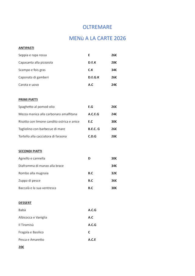 +5The last evening of our visit to Maiori was made so incredibly special by the maître d', Vincenzo and front of house staff, Antonella, Letizia and Patrizia at Oltremare. The service was warm, friendly and inviting and thorough explanations were given for each dish, detailing the ingredients and their provenance. We opted for one of the tasing menus with wine pairing. The chef presented every dish exquisitely and they were absolutely delicious. Thank you for a wonderfully unforgettable evening.