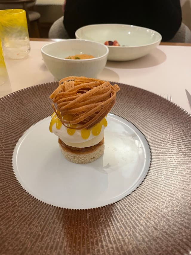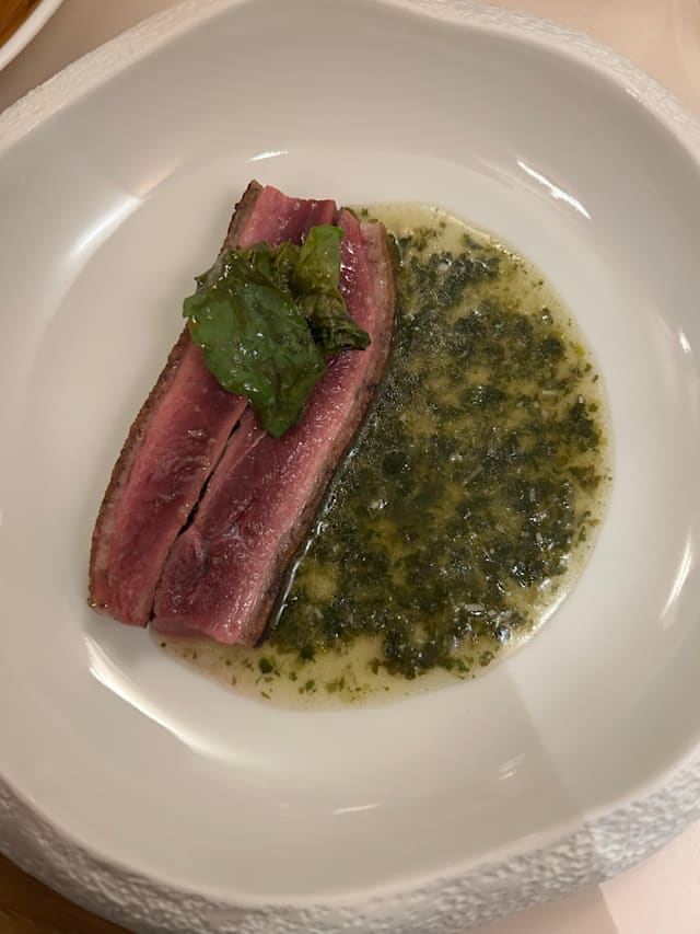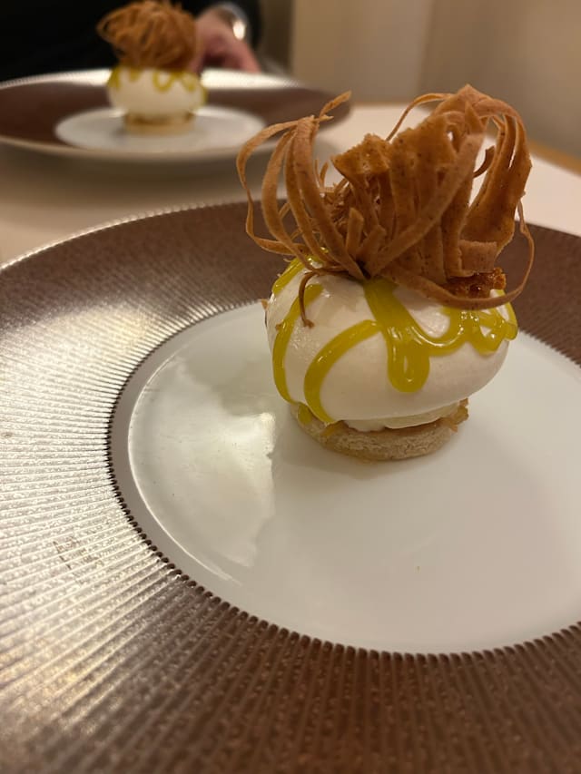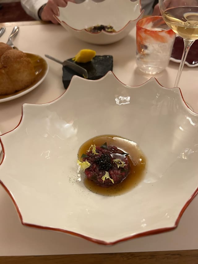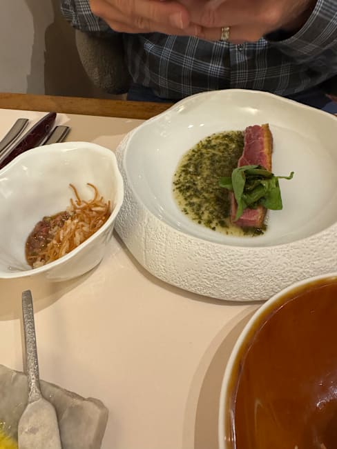 5/10All in all, it was rather an absurd experience. It took something half an hour before we got the food menu. The restaurant served butter, but no bread. The appetizer and the main course were uninspired, in no way at the level of a Michelin-starred restaurant. The dessert was quite good. We ordered the wine pairing. The size of the servings was absurdly small, well under the promised 12 centiliters. The service was inattentive, bordering on the rude. Sadly, the dining room is somewhat claustrophobic. I would not recommend this restaurant.