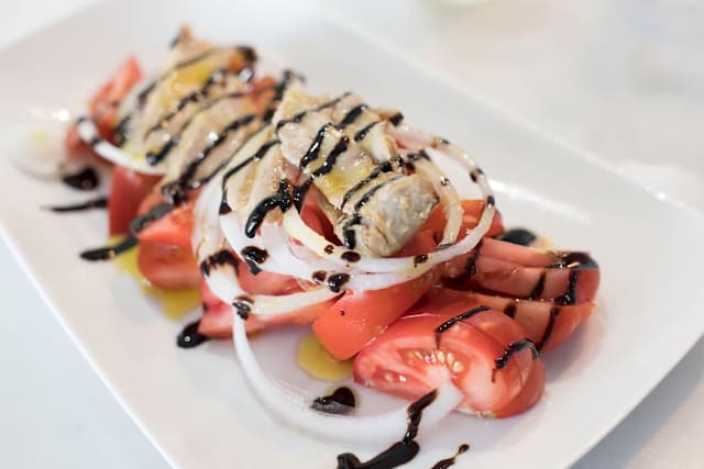 - Zamburiñas (1/2 docena) + ensalada de tomate pata negra + gambas a la plancha + ½ ventresca de atún + botella de vino de la casa + postre de la casa