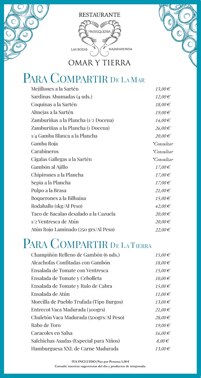Menú mar y tierra€26 per guest