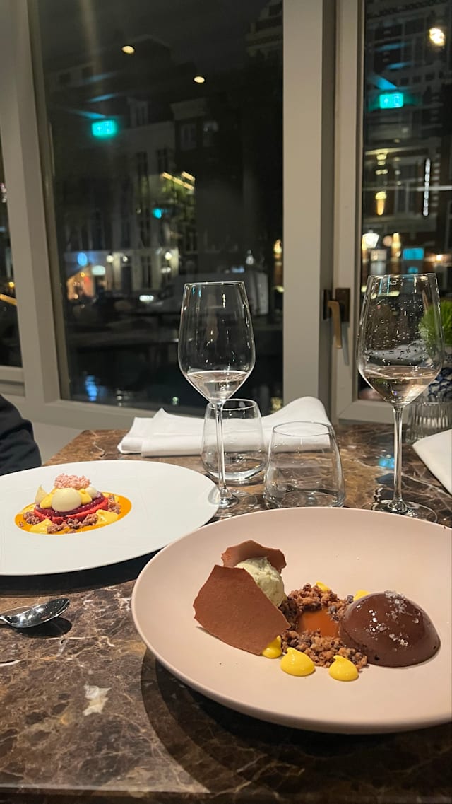 10/10Honestly, 10/10. we tried it out as we were spending two days off in Amsterdam and it was an absolute surprise. even though we weren't quite appropriate for this kind of chic restaurant, we've felt welcomed the service was so kind from the get go. clearly the chef knows what they're doing here, the food was amazing. not to mention the view. I'll come back asap.