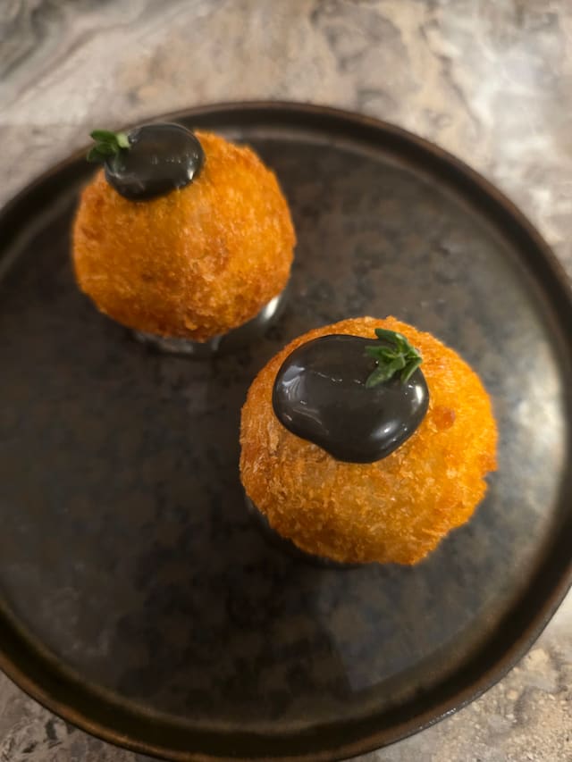 Camarão, emulsão de manteiga, alho, malagueta, coentros e batata palha