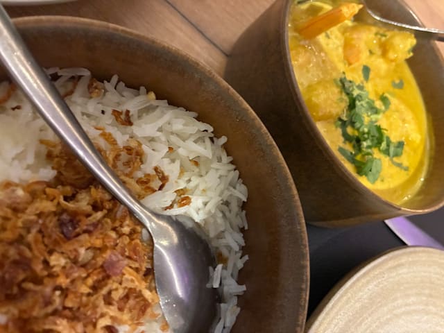 6/10I had the cod on spinach which was fine except the amount of salt in the spinach. My wife had a prawn rice, unfortunately the prawns were shrimps. The ambiance was poor. More like a school hall with tiles. No decoration or style. Windows were dirty. Corkage: A €7.00 wine sold for €15.59, Which was the corkage charge. Just a moneymaking issue. we had beer!