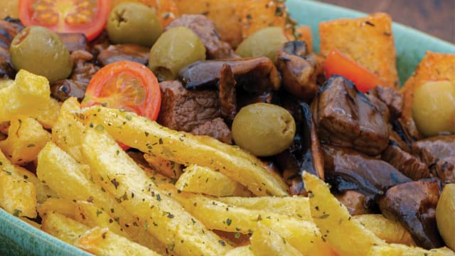 Picado à madeirense do lombo com batata frita e milho (2 pax)