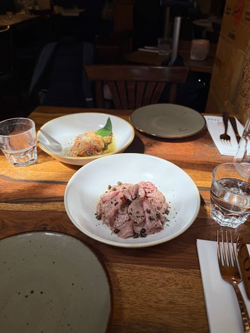 6.5/10Nice location and service is friendly but too few staff for the number of guests. My vitello tonnato was simply not good and the ribeye was at best a tiny 7 . Desserts were average. I had reserved based on very positive, recent reviews, but I must admit being surprised. We either had an unfortunate evening or the reviewers were too kind.