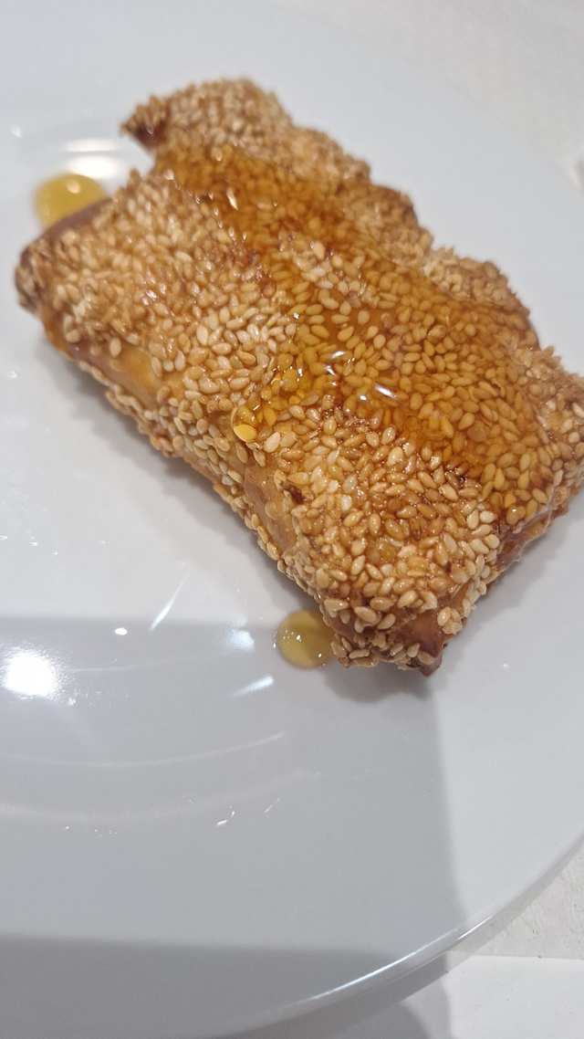 - Pasta fillo arrotolata con crema di latte sciroppata al miele