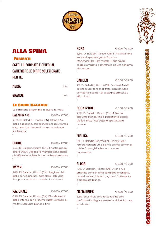 Puoi prendere la linea B della metropolitana e scendere alla fermata "Circo Massimo". Da lì, Open Baladin è raggiungibile a piedi in pochi minuti, trovandosi in Via degli Specchi, 6. In alternativa, puoi utilizzare diverse linee di autobus che fermano nelle vicinanze, come il 23, 280, 30, 46, 492, o il tram numero 8.
