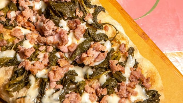 Focaccia alla pala panatè fatta in carcere, mozzarella fior di latte, prosciutto cotto, spinaci, stracciatella caseificio andriese perina