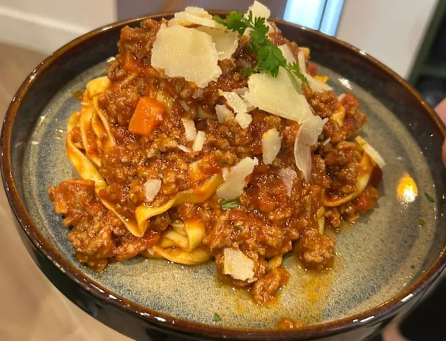 - Tagliatelle bolognese: pâtes fraîches avec sauce bolognaise fait maison