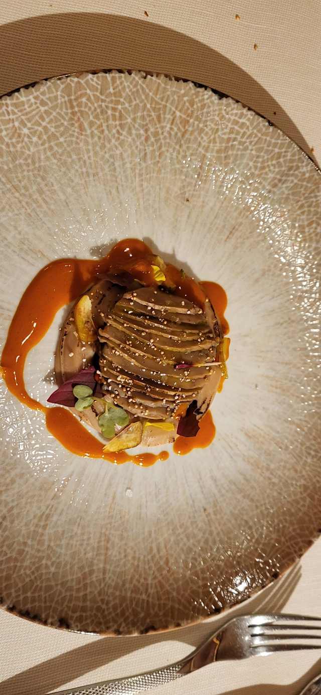 10/10+8Michelin star service and experience! As a touristto Turino, it was very nice that most of the staff spoke English. Every course was a delight and paired exceptionally with wines (Opera, Act II wine choice). It's difficult to pick a favorite dish as each was so delicious and presented, but the seafood (cuddlefish) risotto was unparalleled paired with the 2008 Querbach Riesling. We would happily return 😊