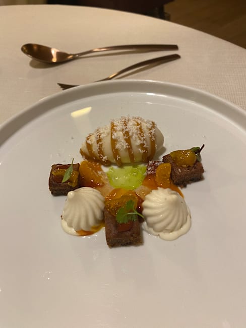 10/10We had high expectations, which were fully met or exceeded. The four of us had a large table where we could chat and enjoy the food in a quiet atmosphere. The service was always on hand, very friendly and competent. We chose the Opera menu, without wine accompaniment, but with a tea accompaniment. The individual bottles recommended with the meal were very well suited. During the meal itself, each course was an experience. The culinary evening is not cheap, but worth every euro. We will be happy to come again.