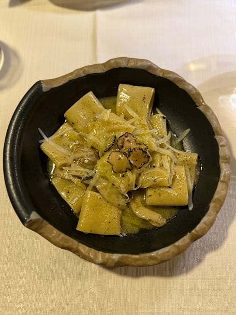 6/10We went with high hopes given other reviews but left disappointed. Starter was good - trio of tartare Spaghetti with crab had a crab shell/legs sitting in it but otherwise no noticeable taste of crab. Mains were disappointing in particular the turbot was a small tail piece and the vegetables were very wet and no contrasting texture. Largely empty but the air conditioning was on full so it wasn't a very convivial atmosphere. The waiter was excellent though. May have just been an off night but definitely vary the air con to suit the number of people in the restaurant.