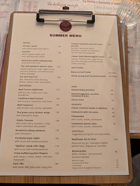 10/10I had a wonderful dinner at Opificio 44. The fusilloni with arugula cream, pine nuts and pecorino was perfectly balanced — fresh, fragrant, and not too heavy. The vitello tonnato was beautifully prepared: tender veal with a delicate, flavorful sauce that felt both traditional and refined. Portions were just right, and the presentation was elegant without being overdone. The vibe of the restaurant, and the flavours that come through in the food, are the very best of Tuscany: rustic and wholesome. The atmosphere is warm and stylish, and the staff were attentive, kind, helpful, and welcoming. It’s clear that real care goes into both the ingredients and the service. Highly recommended — a true gem in Viareggio. I’ll definitely return.