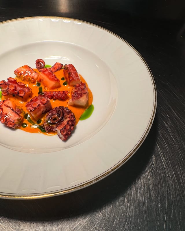 Polpo cotto al bbq, gazpacho, pomodori freschi e menta