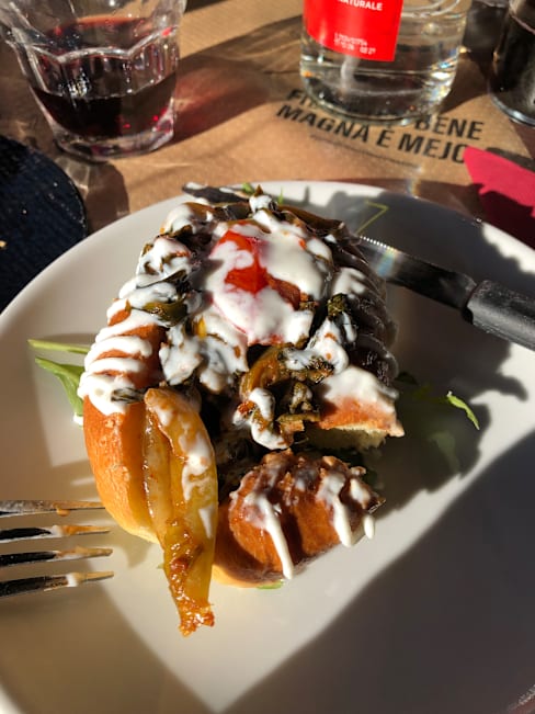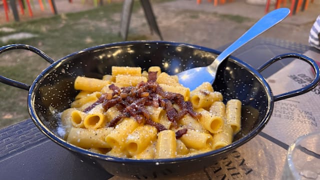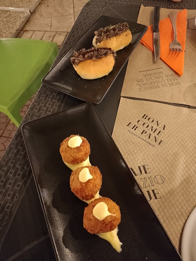 8/10The restaurant was very quiet in fact only the three us were there. The server was very helpful and did a good job. Unfortunately pizzas were not available but we were able to order bruschette pomodorini and a generous portion of local porchetta. Then we had amatriciana and cacio pepe. The dishes were good the ambience is original.